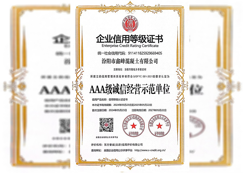 汾陽市鑫峰混凝土有限公司是一家生產普通混凝土、高強度混凝 土及特種混凝土等一系列商品混凝土的股份制企業。